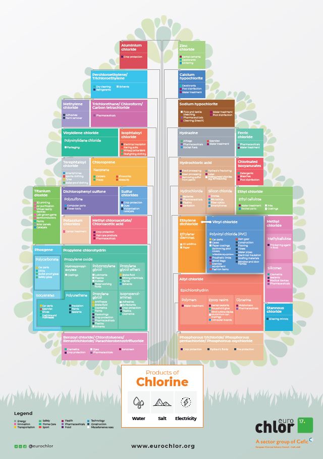 The chlorine tree - Dozens of useful products in which chlorine chemistry plays a key role